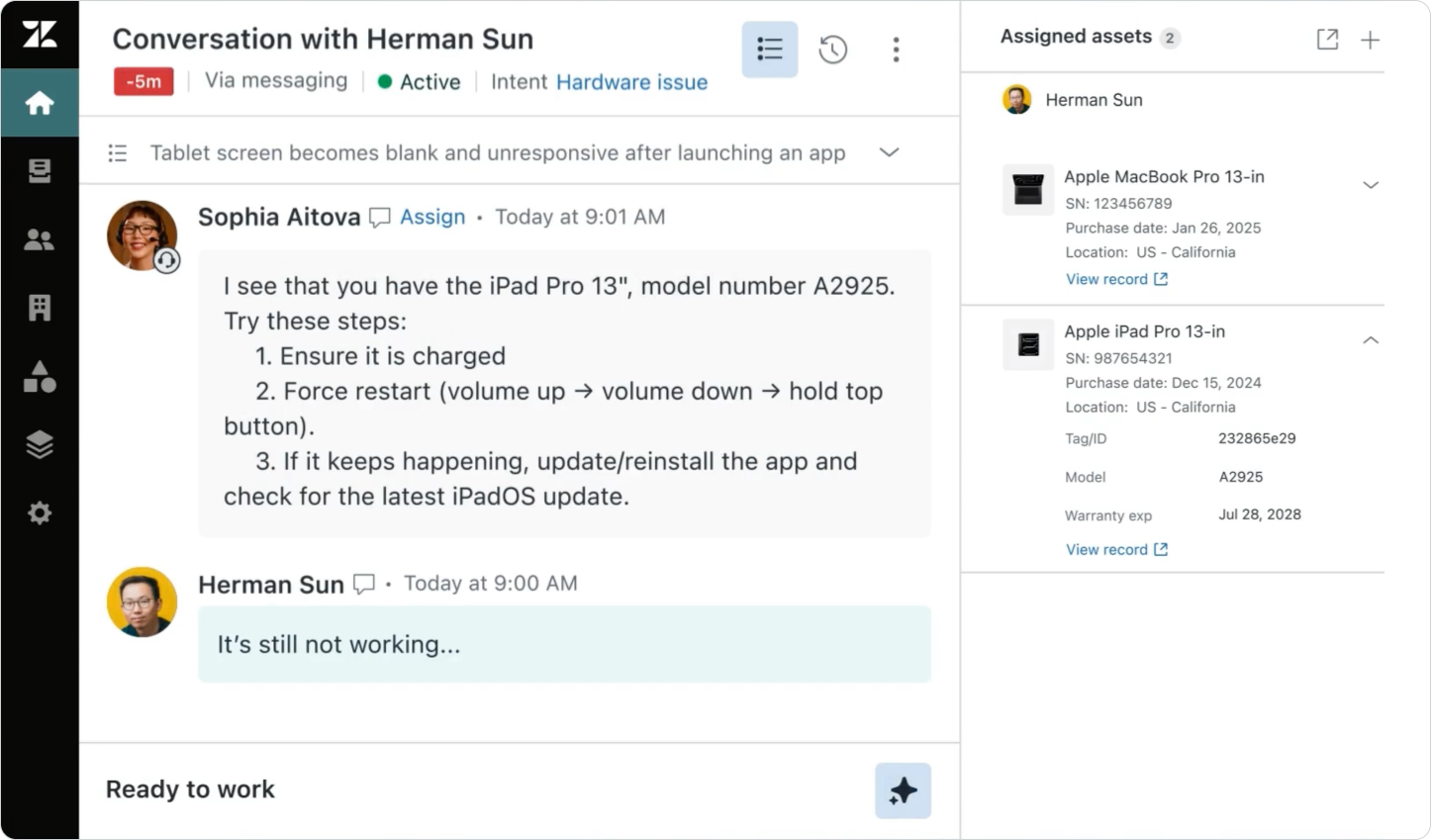 Similar to how the Service Catalog is a more powerful version of forms and lookup fields, this new asset manager allows you to import all your IT assets into Zendesk and manage them within the platform in a more capable version of Custom Objects.