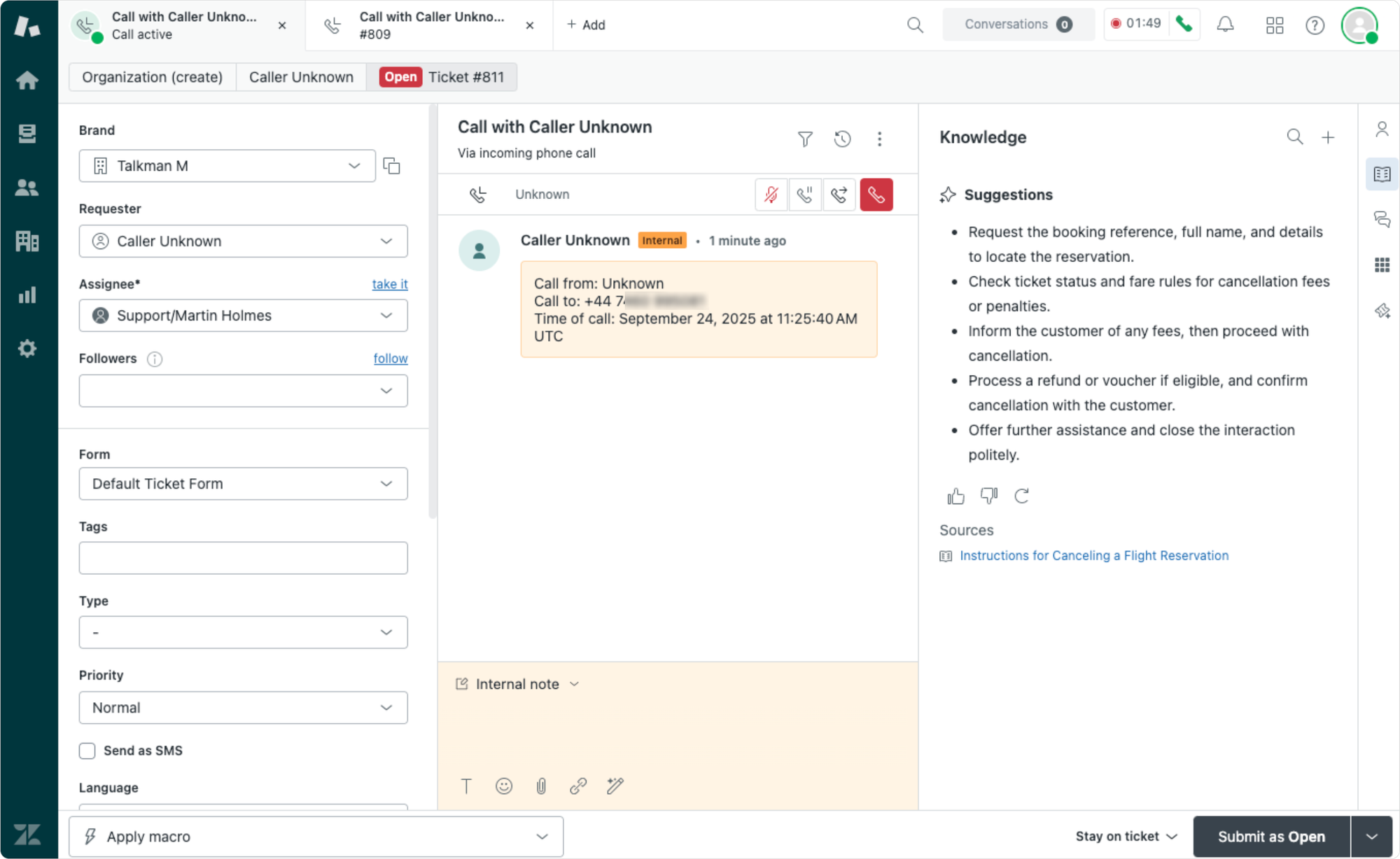 And in scenarios where escalation to a human agent is needed, the AI Agent will ask for required information first, and route the conversation to the right agent based on the use case and intent. Agents will see a transcript of the interaction, and Agent Copilot will keep listening to the conversation, offering instructions and guidance right next to the ticket in Agent Workspace, using the same procedures Auto-Assist already uses for email and messaging tickets.