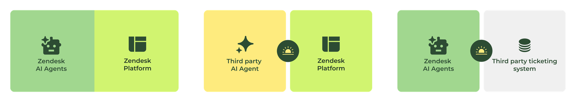- With the rise of modern AI Agents, there's also a set of companies that leverage Zendesk's platform (its ticketing, automations, and reporting) but use a different AI Agent to handle their first-line automation. Those might be homebrew solutions, or commercial tools like Forethought. And Zendesk's Sunshine Conversation platform and rich APIs allow this kind of setup.