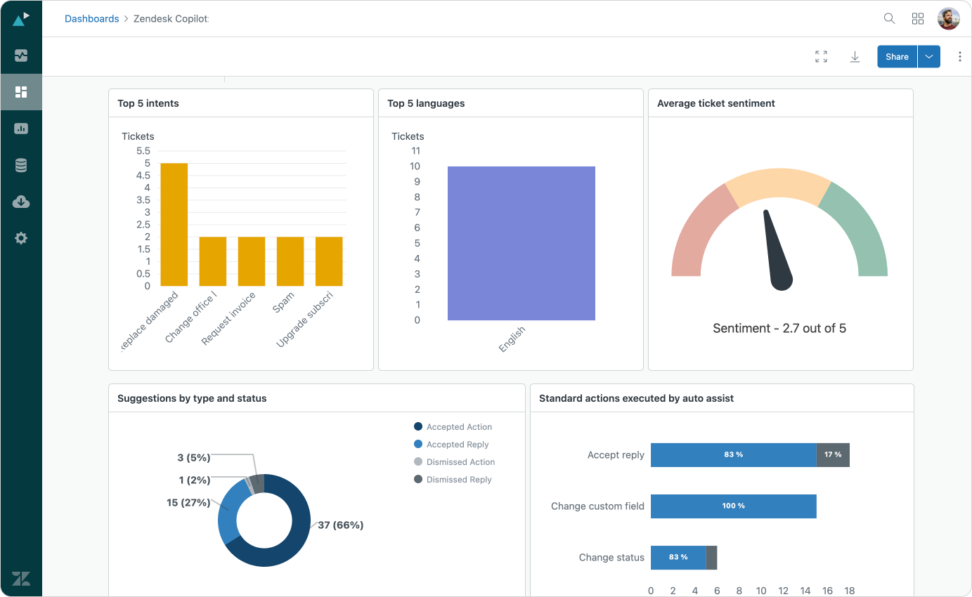 The third barrier is understanding what the numbers actually mean. Zendesk’s HyperArc acquisition is aimed at that layer. Instead of just surfacing charts, it helps interpret them: adding narrative context, historical comparisons, and explanations of why certain patterns appear. It moves teams from passively reviewing dashboards to actively understanding their data.