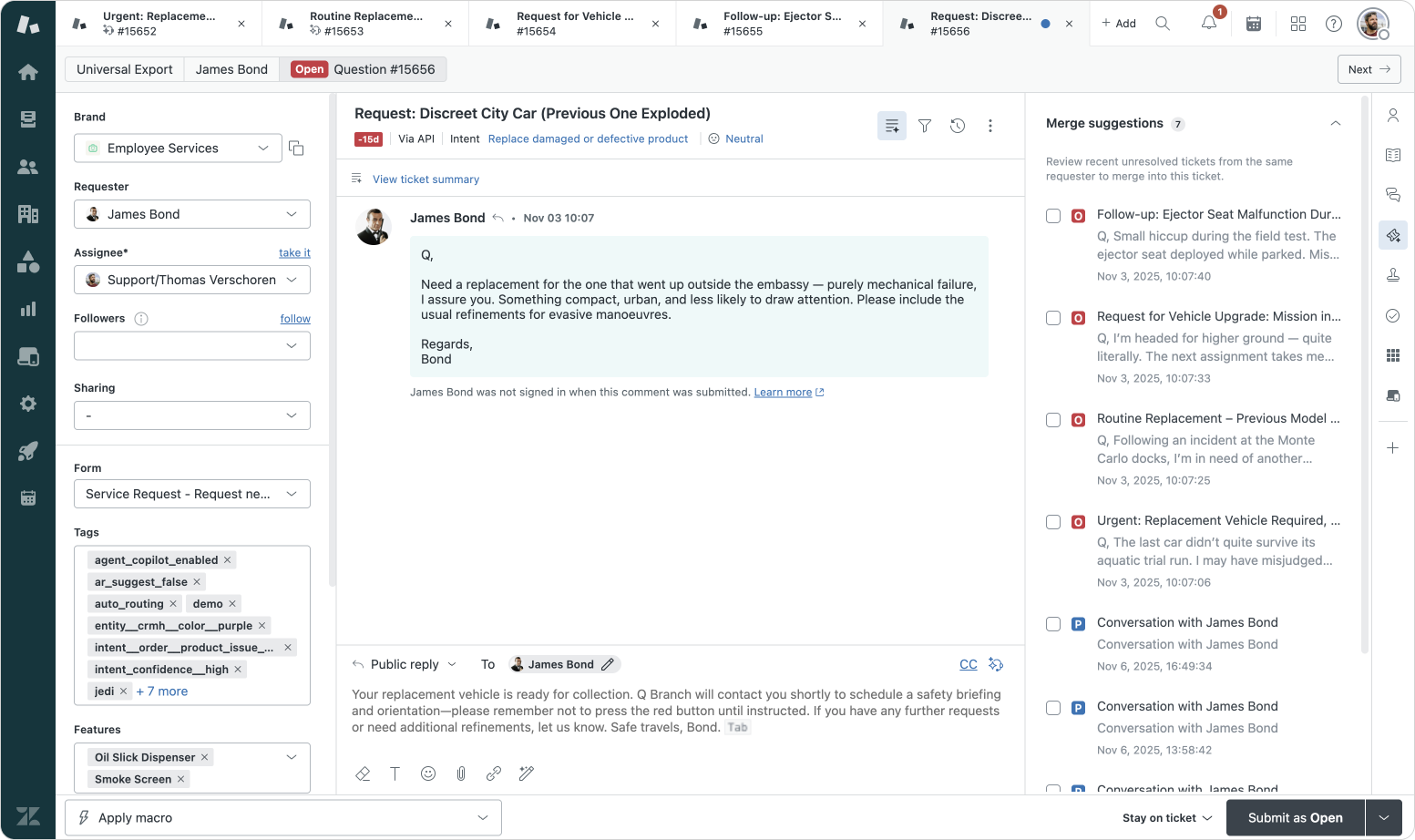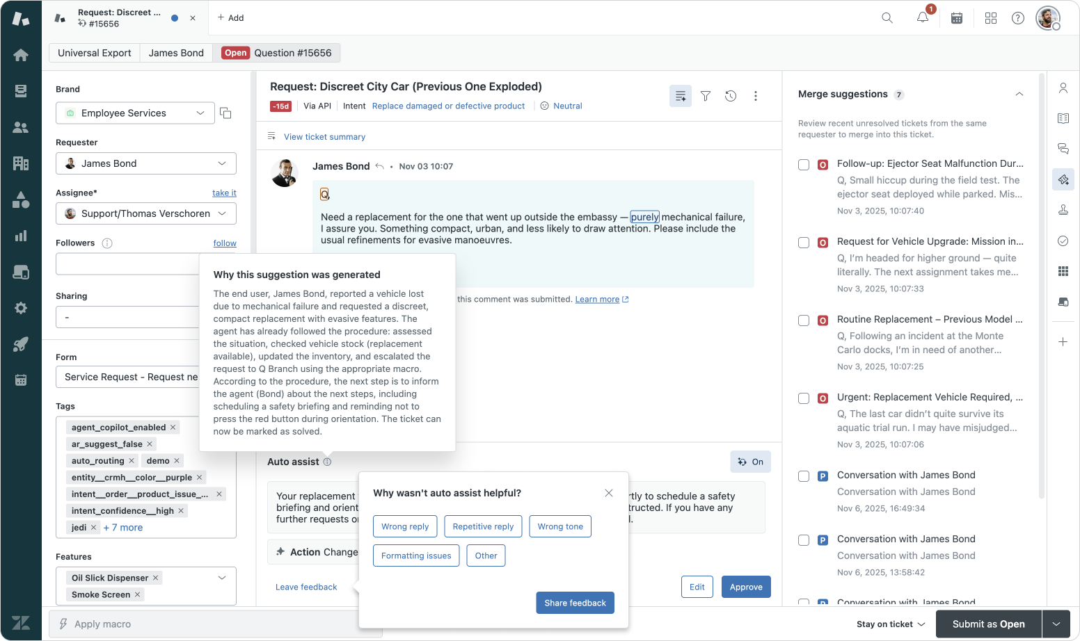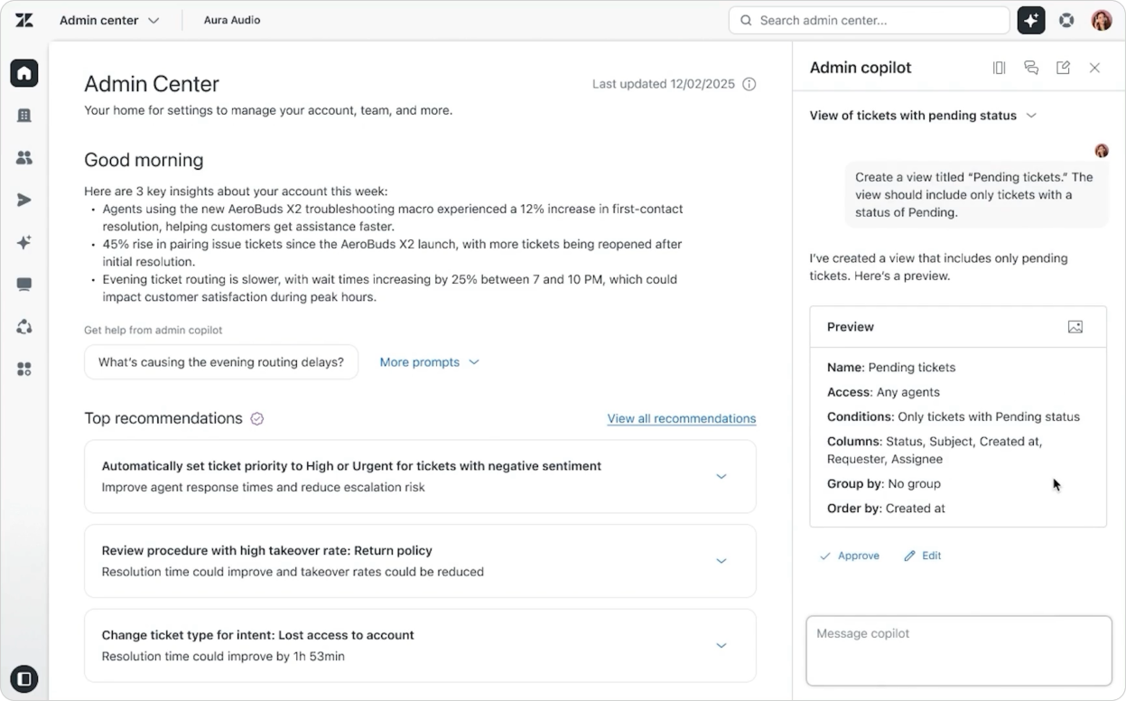 This is where Admin Copilot begins to connect the dots. Instead of manually tracking down the trigger, trigger or automation responsible, you can simply describe the issue to the system. Admin Copilot will surface the relevant configuration, the missing automation and tags, the trigger that is routing incorrectly, or the queue that is misaligned, and help adjust it. You don’t need to search for the setting. You describe the behaviour you want, and the platform shows you where to apply it.