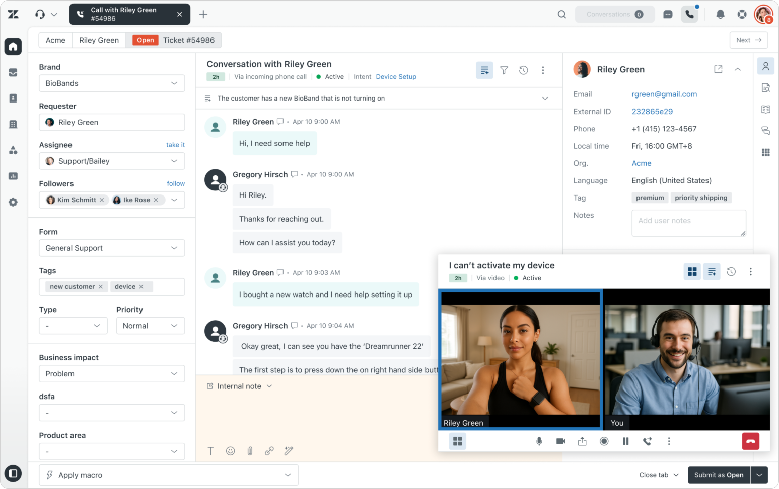 Zendesk’s upcoming video calling and screen-sharing capabilities are a clear example. If a customer is better served by showing you the broken device, the agent can switch to video. If they’re struggling to follow instructions, they can share their screen instead. The medium changes, but the interaction continues seamlessly.