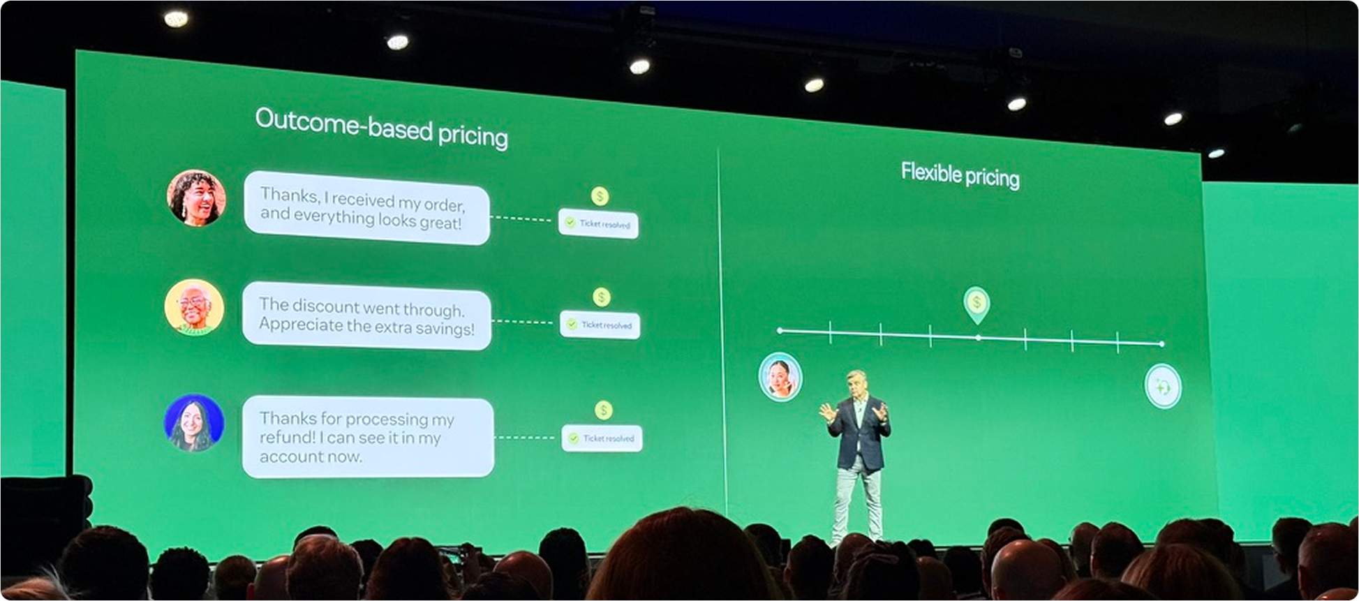 This closely aligns to what Zendesk said at their Relate keynote. Customer Care is no longer about agents solving tickets, but about the combination of AI Agents and a human team resolving conversations. This lead Zendesk to offering two new approaches to their pricing: Outcome-based pricing where you pay only for when the AI Agent actually works – combined with traditional agent seats – and a new flexible pricing model that allows you to convert agent seats into resolutions as your AI Agent becomes more efficient and shifts work from humans to bots.