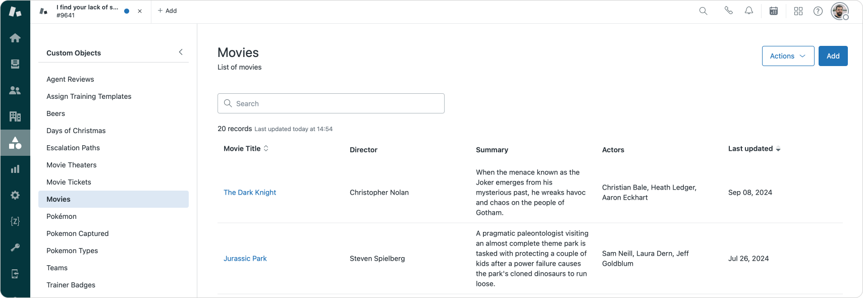 The lists of custom object records now include the object's first three custom fields as columns in the table, in addition to the record's name, date created, and last updated date which have always been included.