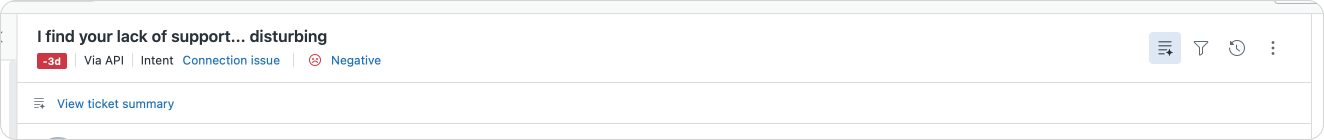 A small update to Agent Workspace now adds that sentiment to a tickets' titlebar right next to the Intent. This makes 2/3 of Intelligent Triage elements visible in the Agent Workspace again after the removal of the Intelligence Panel last September.