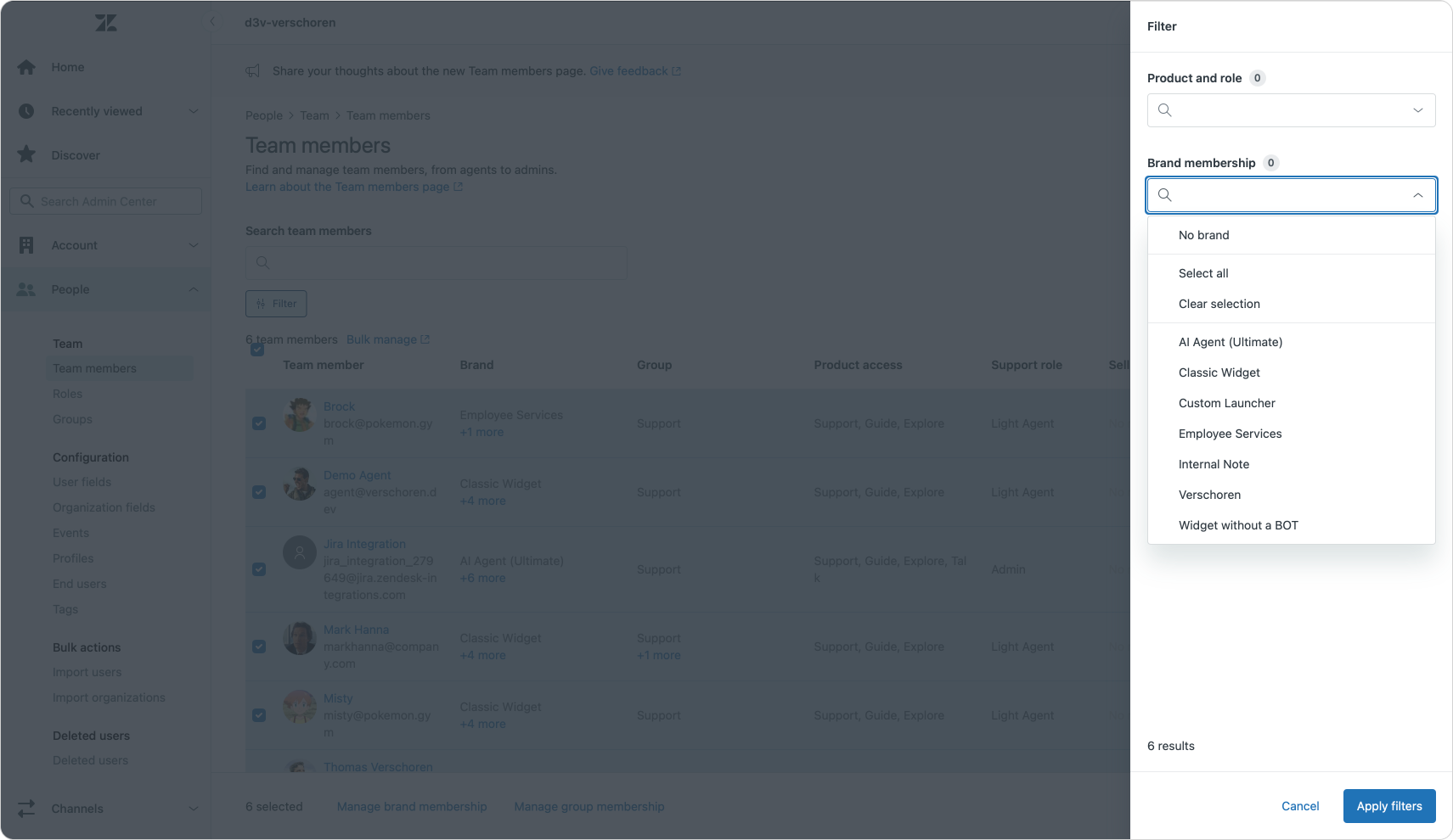 Setting up these restrictions is done in the Team members settings of Admin Center and upon launch you'll need to migrate all members to this new model. A new filter that allows you to quickly list all agents with no brands assigned will make this action a lot easier.