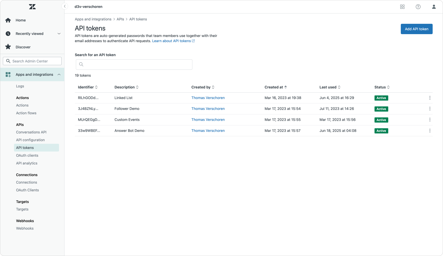 - API tokens