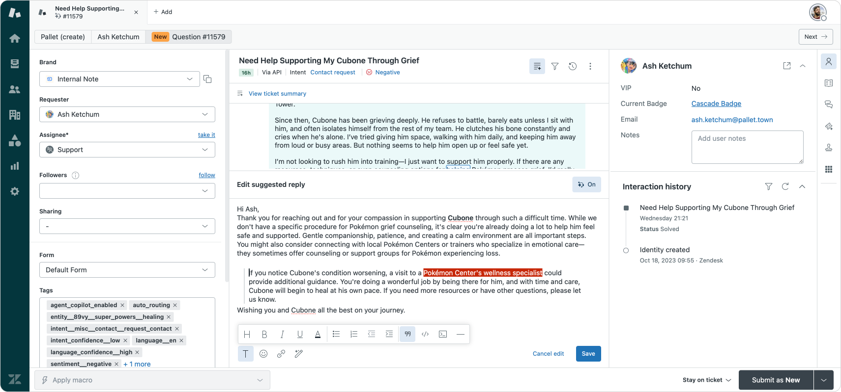 Now, auto assist will tap into similar tickets that were solved successfully when procedures or public help center articles aren't available. Similar tickets will be used to suggest replies, allowing auto assist to continue suggesting helpful and accurate responses.