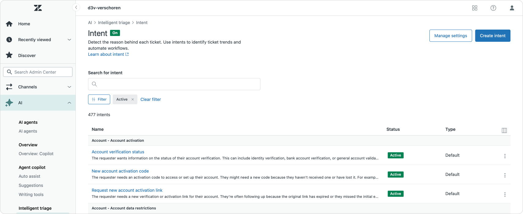 Zendesk optimized the layout of intents, sentiment and entities making it easier to find and manage them.