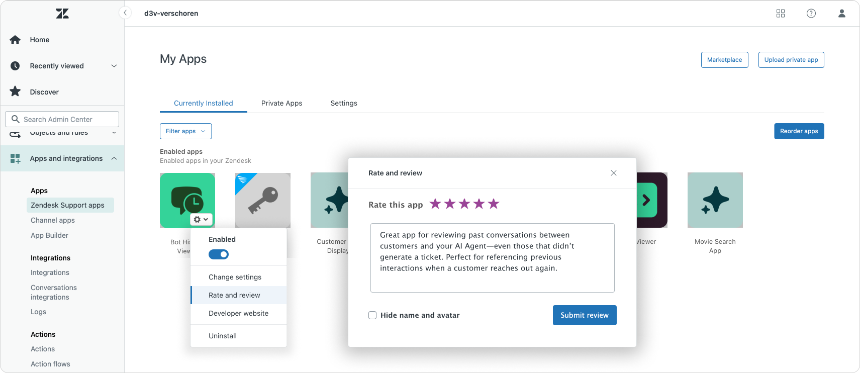 It's now possible to leave reviews for Marketplace apps right from within Admin Center. App Reviews are one of the best ways for developers to get their app more visibility on the Marketplace (and it provides trust to future customers), so if you haven't reviewed your most productive apps in your instance, now's a good time to do so!
