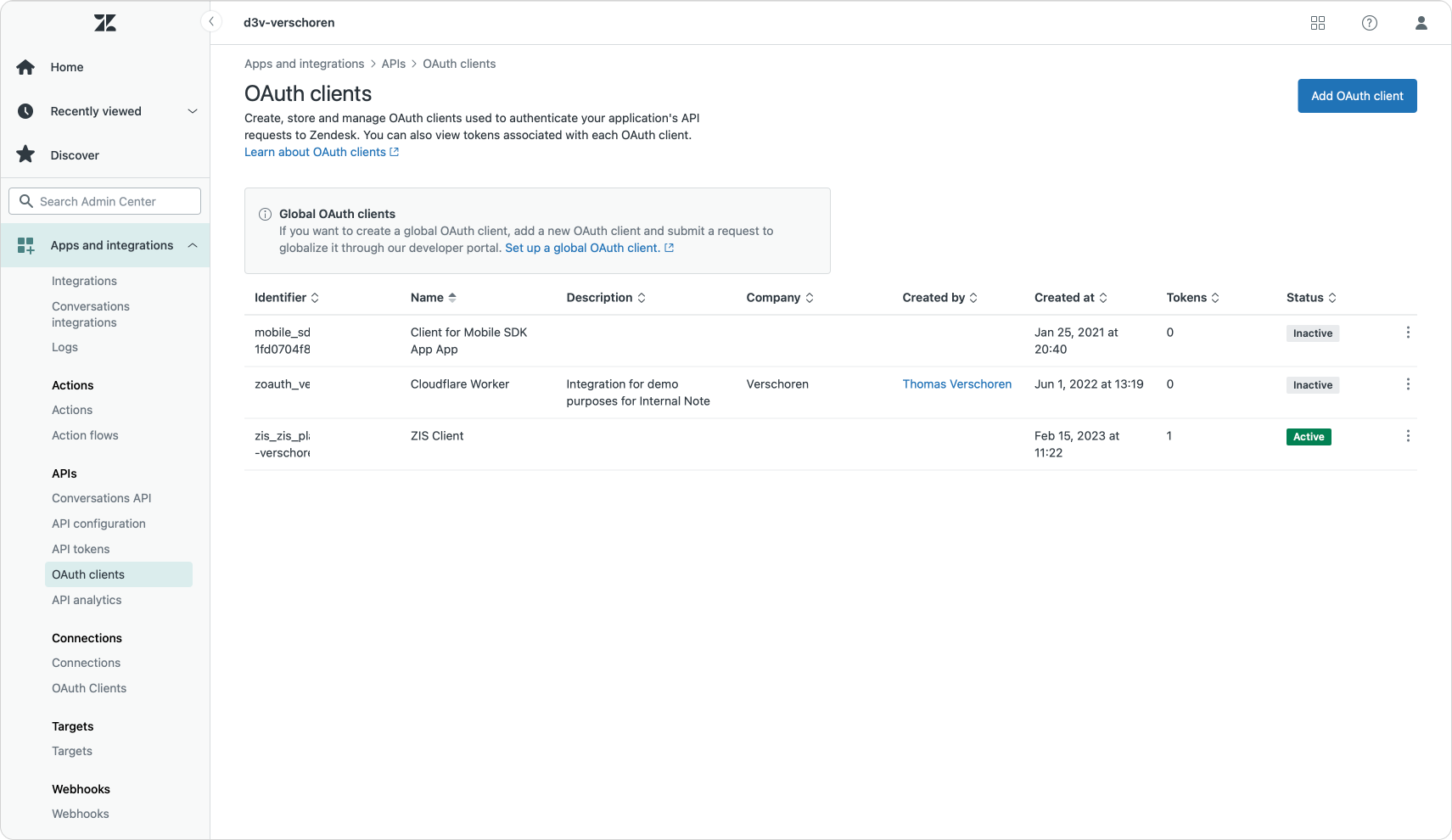 - OAuth clients with a newly designed look to more easily edit and delete tokens and clients