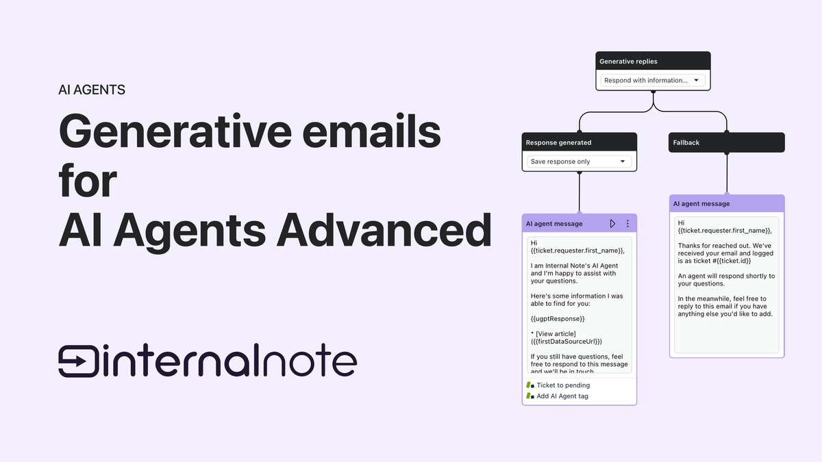 This is where the new generative replies for email agents comes in. Powered by AI Agents Advanced (Ultimate) this new feature allows you to reply with custom replies directly to your customer. Similar to how a chatbot replies with an answer, you can now automatically reply to the customer and offer an answer inline with info pulled from your help center or other knowledge sources.