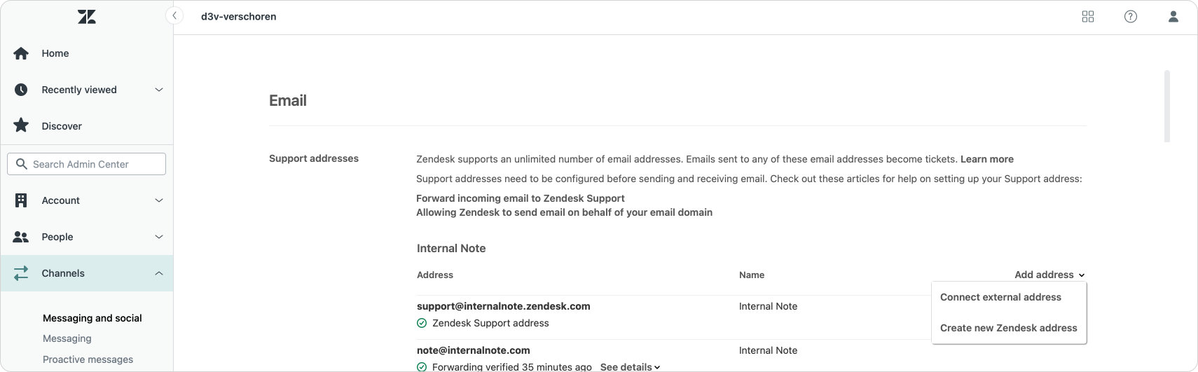 When adding a new external email support address, the “Connect other” option is no longer available. The “Connect external address” option now incorporates both workflows in a single selection.