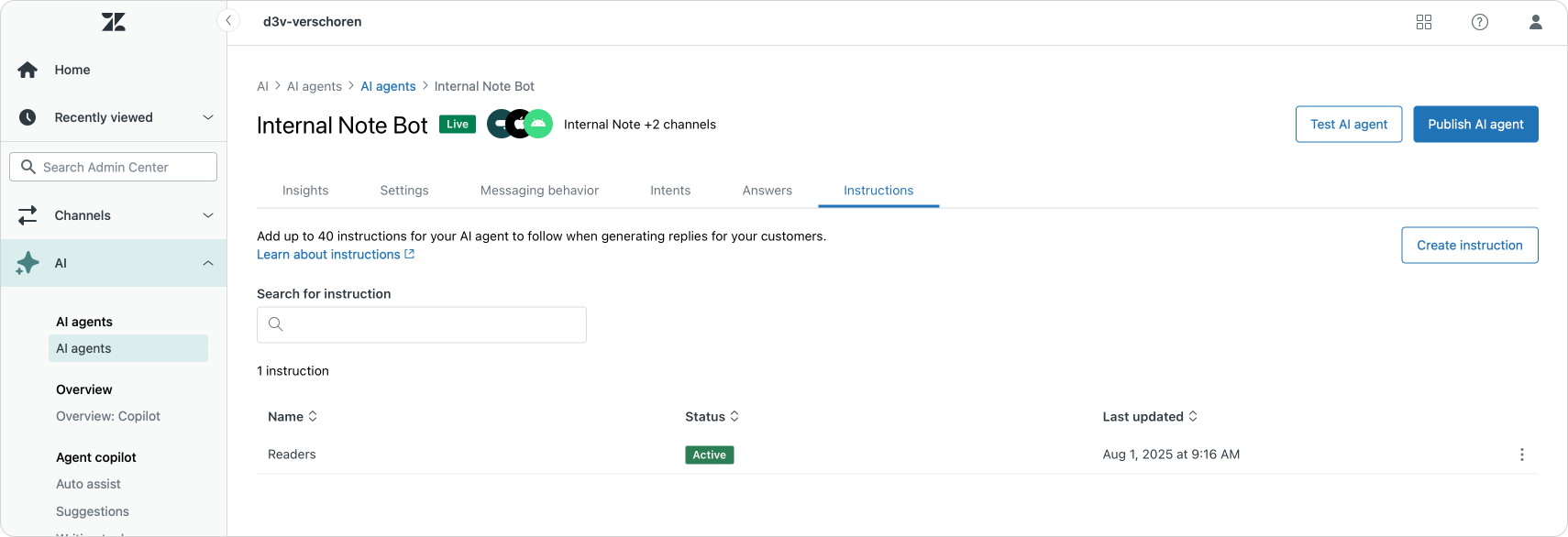 Instructions allow you to tailor your AI agent’s generative responses. This capability, which was previously available only for the AI agents - Advanced add-on, can now be leveraged by all AI agent customers.