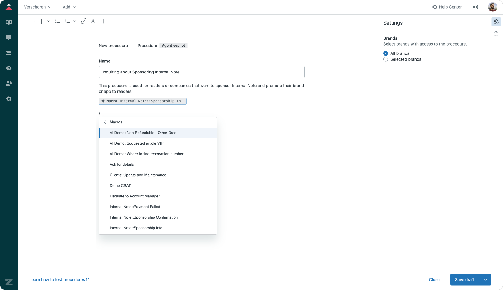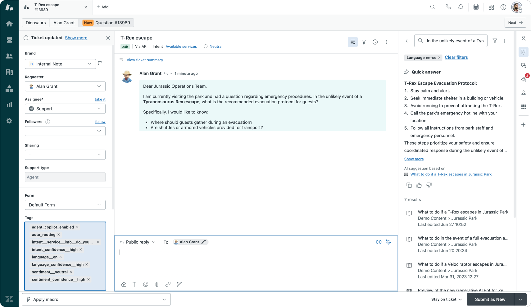Agent Copilot auto-assist pulls answers from Help Center articles, recent comments and procedures. Within procedures we can now tell the procedure to run a macro as part of its process.