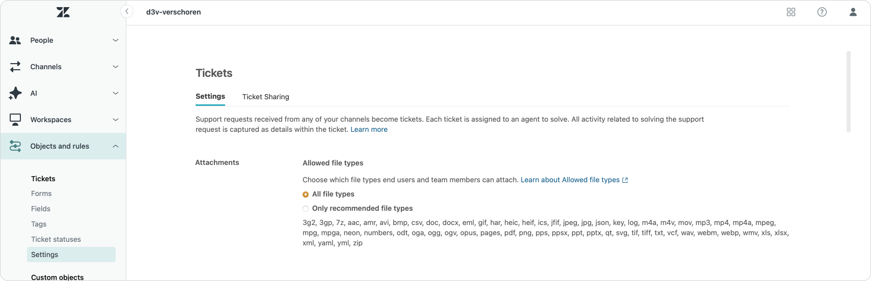 You can now choose if you want customers to send you any kind of attachment, or only a predefined list of file types.