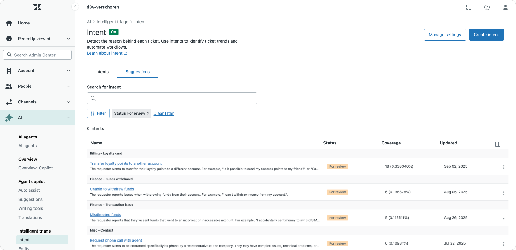 Intent Suggestions for Intelligent Triage