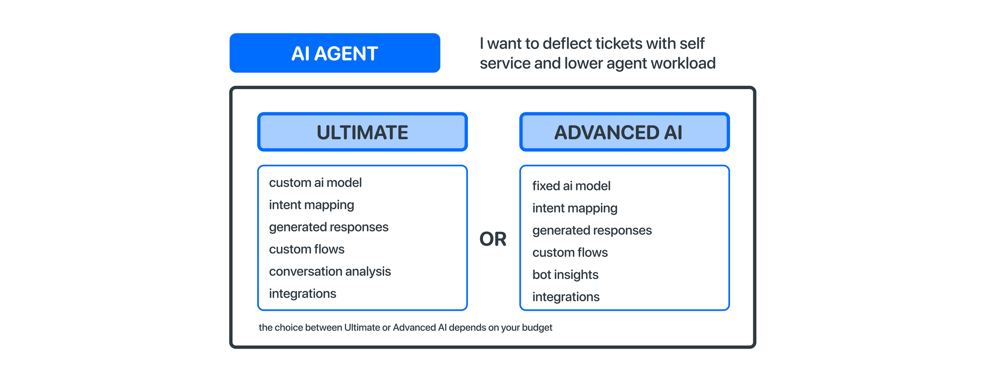 Zendesk currently has two technology solutions they offer: Advanced AI and Ultimate, all branded as AI Agents.