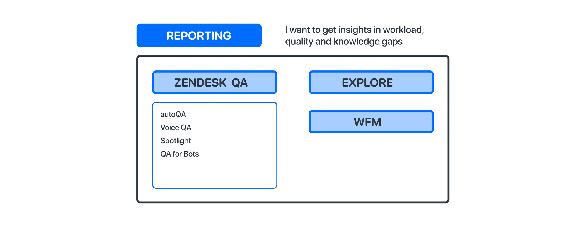 If you want insight in all of the above, you should take a look at Zendesk QA. This AI powered reporting and quality assessment tool dives into these pieces of data for you and can be considered the end of your journey to optimize your CX. (or the beginning, if you use that data to improve knowledge base content and agents' capabilities).