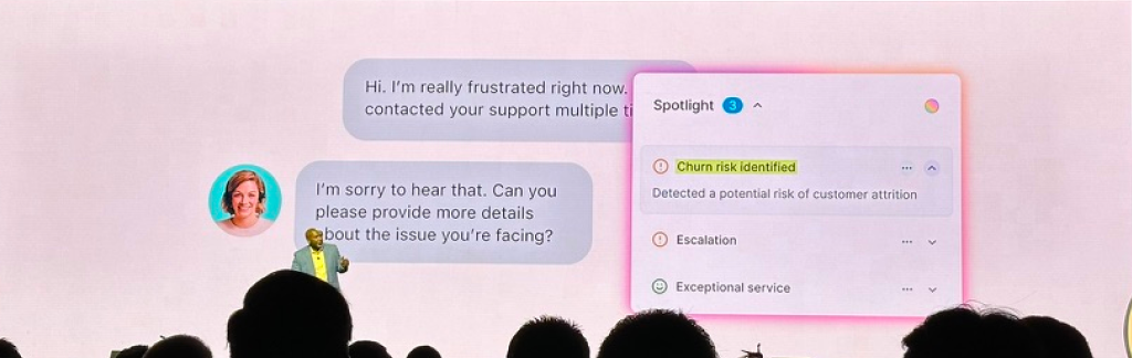 The last part of the QA announcements gave us Spotlight, a new Conversation Discovery Engine powered by Zendesk AI. It provides an overview of all your customer interactions and flags potential issues like churn risk.